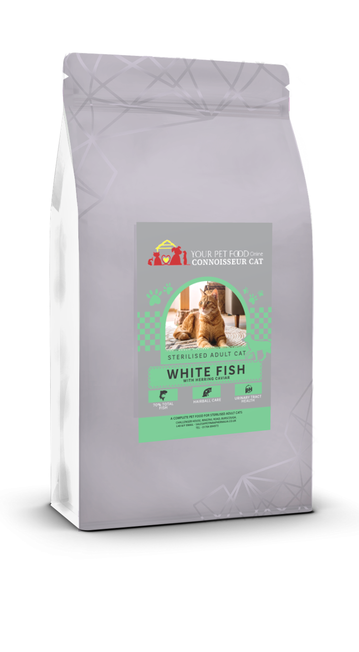 • Minimum 350% Freshly Prepared White Fish & Herring Caviar – Responsibly sourced and highly digestible protein, ideal for cats.